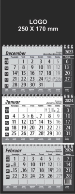 TRIDELNI ŠPIRALNI STENSKI KOLEDAR Format: 245 x 700 mm