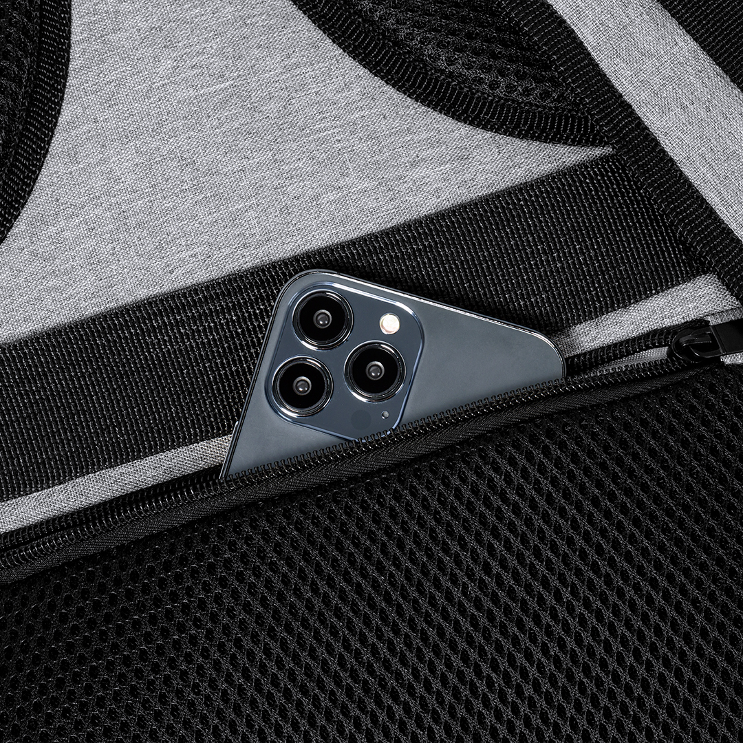 Ima tudi 3 posebne predale, stranski žep, idealen za hiter dostop, žep za čevlje na dnu z odprtinami za prezračevanje in žep proti kraji na hrbtni strani ter USB kabel. Popoln za potovanja ali vsakodnevno uporabo z nastavljivimi naramnicami, ki ustrezajo vsem življenjskim slogom. Na voljo v črni in sivi barvi, z nalepko RPET. Pakirano posamično v reciklirani vrečki.