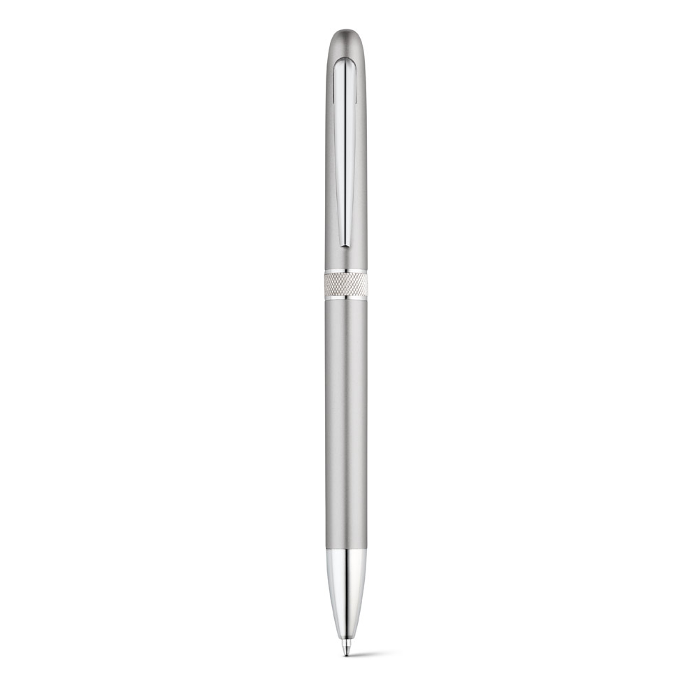 Kemični svinčnik z zasučnim mehanizmom in kovinsko sponko. Modro črnilo.