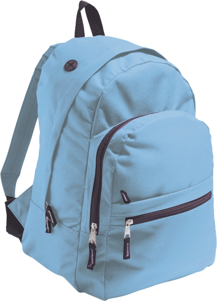 NAHRBTNIK EKSPRES 1600D poliester veliki predal z dvojno zadrgo, 3 sprednji predali z zadrgo, luknja za MP3 predvajalnik, 33x43x17 cm , rdeča, sv.modra do odprodaje zalog